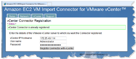 The new Amazon EC2 VM Import Connector is a virtual appliance (vApp) plug-in for VMware vCenter. Once installed, you can import virtual machines from your VMware vSphere infrastructure into Amazon EC2 using the GUI that you are already familiar with. This feature builds on top of the VM Import feature. The Connector stores separate AWS credentials for each vCenter user so that multiple users (each with separate AWS accounts) can use the same Connector. The account must be subscribed to EC2 in order to use the Connector.