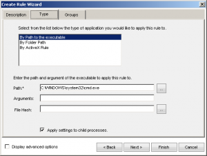 Let’s create a rule on a newly created GPO to elevate the Command Prompt process with the BUILTIN\Administrators group and an additional DEMO\Cheese group. The DEMO\Cheese group has no members.