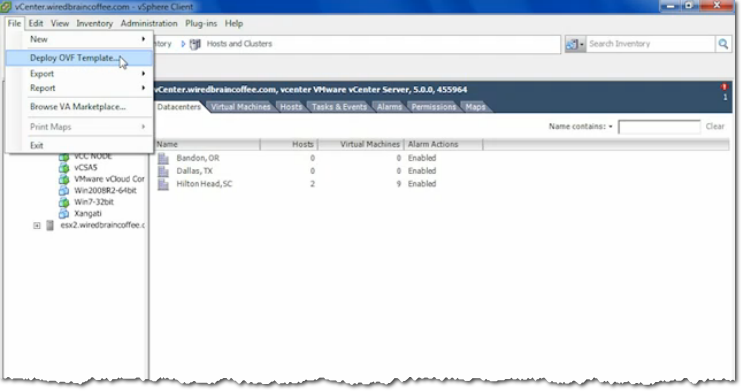 To import, go to your vSphere Client and navigate to File > Deploy OVF Template.