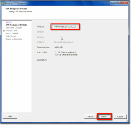 The system should then display the VDI Manager for ESX. Click Next.