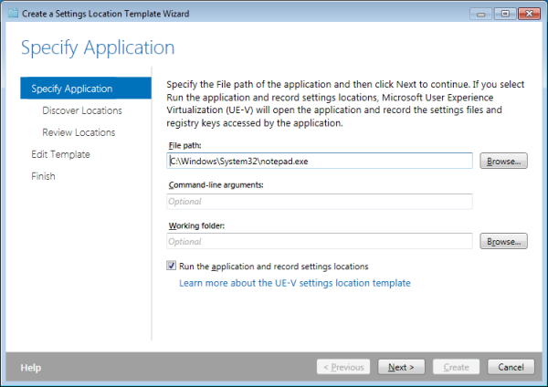 The problem with a product working with inclusions is, of course, that you need to tell it exactly where the settings are stored that you want to roam. In other words, you need to create template files for every application. Microsoft knows that very well, of course. To ease the pain UE-V comes with an application simply called Generator (which is, by the way, remarkably similar in functionality to sepago’s PMAppMon; UE-V’s monitoring component even has nearly the same name: AppMonitor).